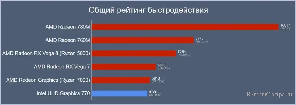 - AMD Radeon Graphics (Ryzen 7000) – более 68%;