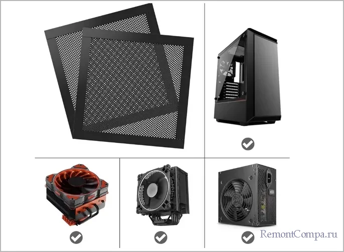 На рынке можно встретить универсальные пылевые фильтры по типу магнитных рамок. Они крепятся к корпусу ПК или комплектующим с помощью магнитов. Не требуют использования скотча, клея или крепежей. Легко снимаются для чистки и устанавливаются обратно.