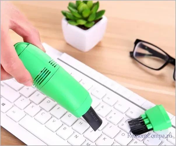 - Миниатюрный пылесос-щётка для клавиатуры и рабочего стола для быстрой уборки рабочего места от пыли и крошек;