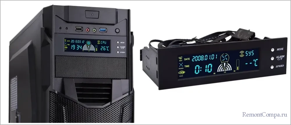 Вообще, друзья, разных устройств и приспособлений для ПК огромное множество. Не все из них нужны рядовому пользователю. Как, например, фронтальная панель корпуса с часами, датчиком температуры внутри и возможностью настройки оборотов кулера. Но такая приблуда может произвести фурор, будучи подаренной друзьям-геймерам или энтузиастам.