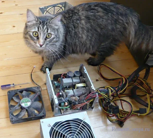 Источником избыточного шума, гула и треска может блок питания. Это также компонент ПК с собственным активным охлаждением, т.е. кулером. Он может создавать проблемы по упомянутым выше причинами. Блок питания необходимо разобрать, очистить от пыли, очистить кулер, смазать подшипник, в крайнем случае – заменить кулер. Детали – в статье «Гудит блок питания».
