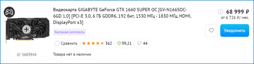 Видеокарта была представлена в 2019 году и заявлена как самая младшая версия, из построенных на микроархитектуре Turing. Она совсем немного уступает RTX 2070 и обращая внимание на нынешние цены её даже можно отнести к среднему классу. Тем не менее в сегодняшних условиях это отличный вариант для гейминга.