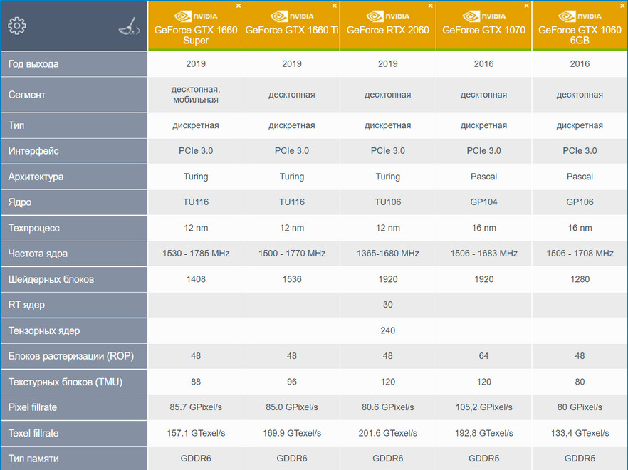 Если сравнить GeForce RTX 2060 со своим предшественником GTX 1060, то покупка старшей будет казаться ещё привлекательнее. GTX проигрывает в производительности, а именно в среднем количестве кадров, процентов на 55 — 60. Кроме того, 2060 выигрывает на 10 — 15% у более крутой версии 10-й серии, а именно GeForce GTX 1070, тем самым становясь в один уровень с GTX 1080. Но не забываем, что у видеокарты 20-й серии есть такие блага цивилизации как трассировка лучей и технология DLSS, которая позволяет поднять фреймрейт, не потеряв в качестве картинки, а иногда и улучшив её. Да, например, видеокарты GTX 1660 Super и GTX 1660 TI также могут запускать игры с трассировкой лучей, но у них нет отдельных RT-ядер и вся нагрузка ляжет на ядра CUDA. Соответственно, чтобы увидеть всю красоту Ray Tracing, нужно будет существенно снизить настройки графики.