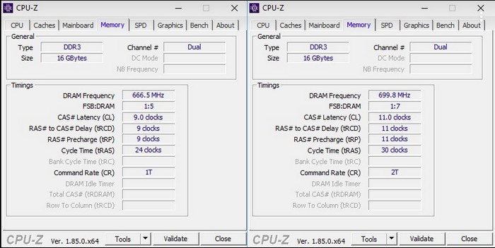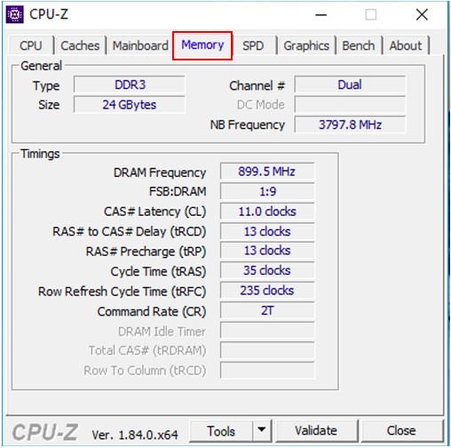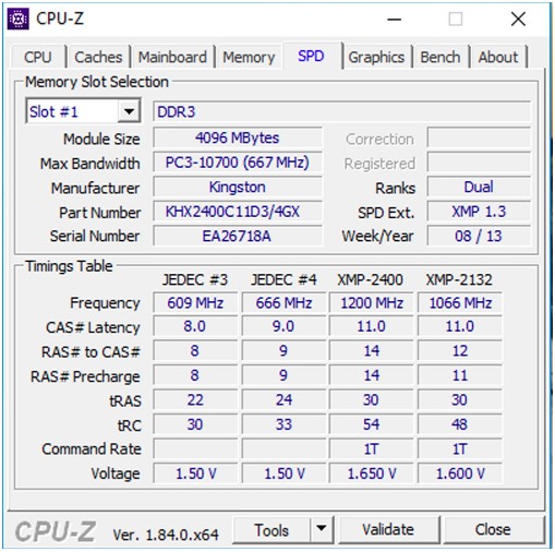 Жмём F10, этим мы сохраняем изменённые настройки БИОС, и перезагружаемся. Запускаем утилиту CPU-Z и видим, что у модуля оперативной памяти изменились тайминги, они стали меньше и память будет после этого работать чуть быстрее.