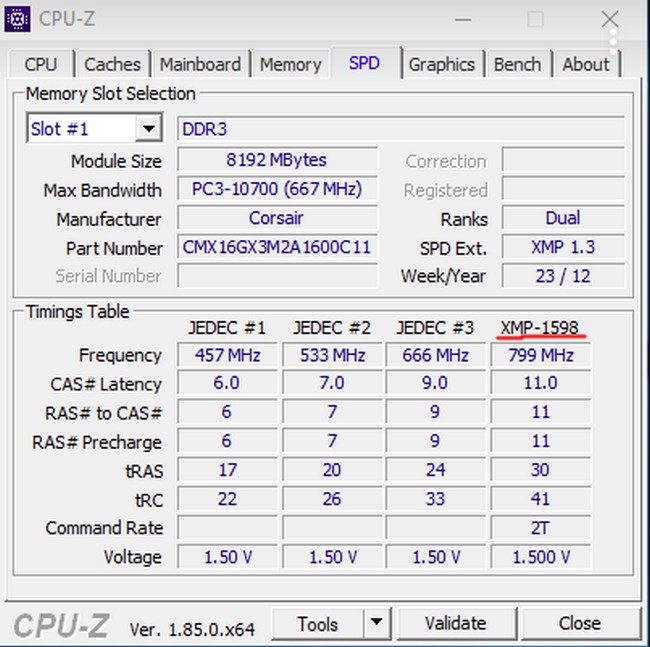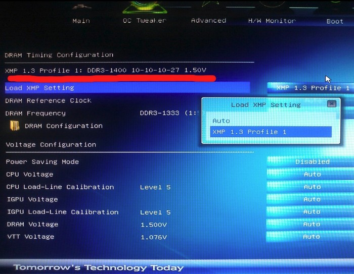 Как видим профиль X.M.P задействовать нам удалось и оперативная память теперь будет работать с более высокими таймингами.